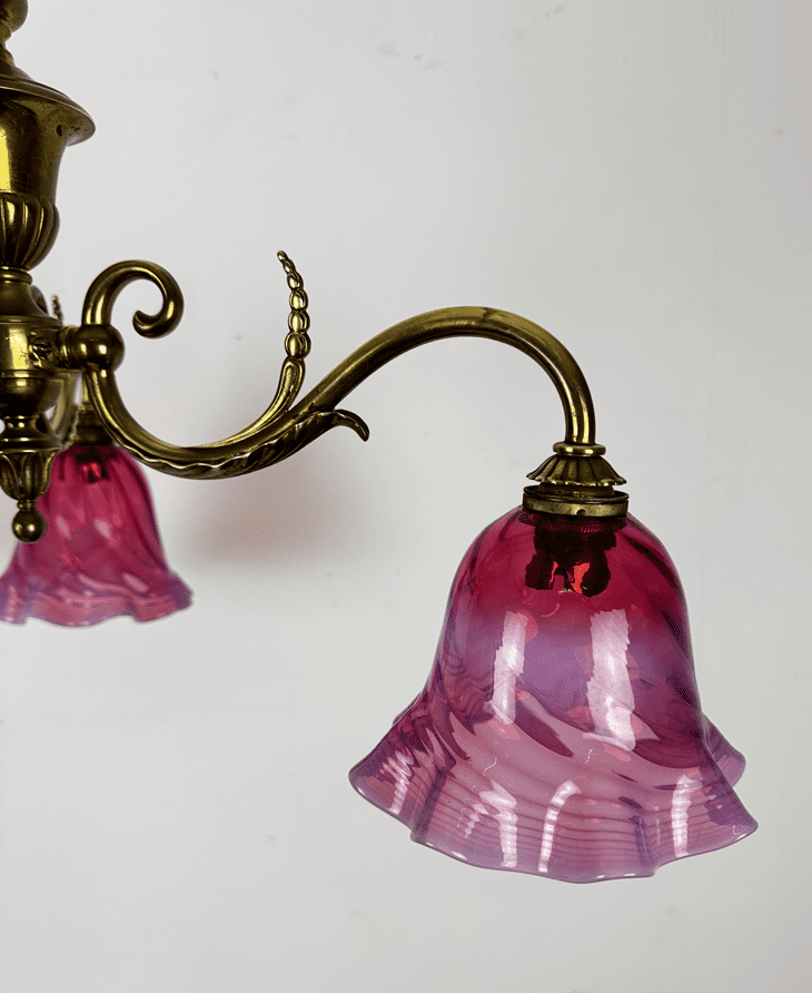 Small Art Nouveau Chandelier Cranberry Glass Shades (56217)