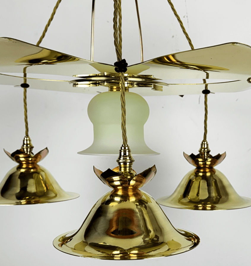 Three Arm Brass and Copper Art Nouveau Chandelier (26207)