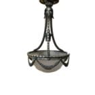 A small and pretty chandelier in the empire style. A frosted glass bowl (attributed to James Powell) sits within a fancy ring with swag detail.