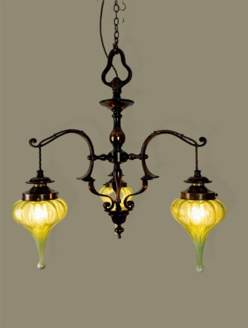 Three Arm Art Nouveau Chandelier with Pink Glass Shades (55190)