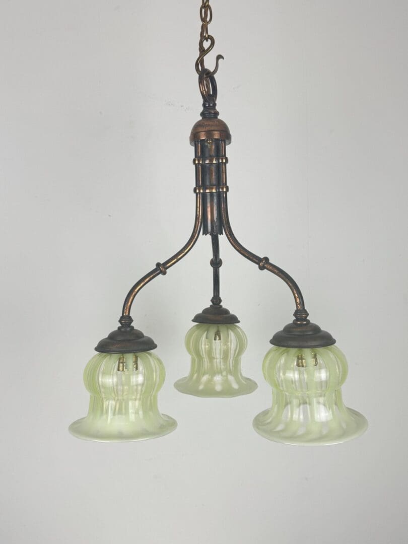 Three Arm Art Nouveau ChandelierCut Glass Shades (91082) RESERVED
