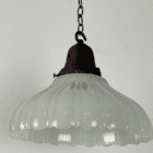 Medium sized pendant light in thick moonstone glass.   Fitted with an antiqued brass gallery.
