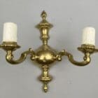 Nicely detailed antique style wall lights in heavy solid brass. Featuring scrolled arms and nicely detailed candle cups.
