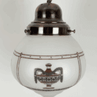 Highly unusual and eye catching style from the Art Deco era. This shade is made from satin opaline white glass which has been decorated with a Grecian style urn and swag detail.