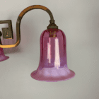The cranberry glass shades have been made for us by a UK based artisan glass blower who still uses the methods and styles of the early 20th century makers.