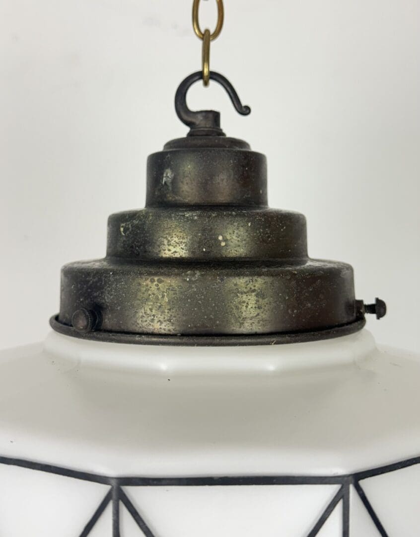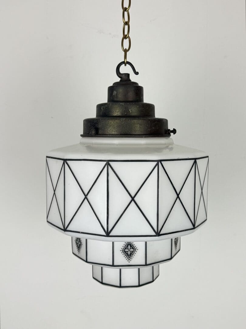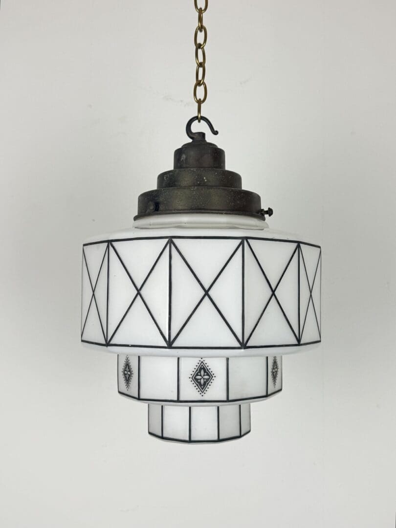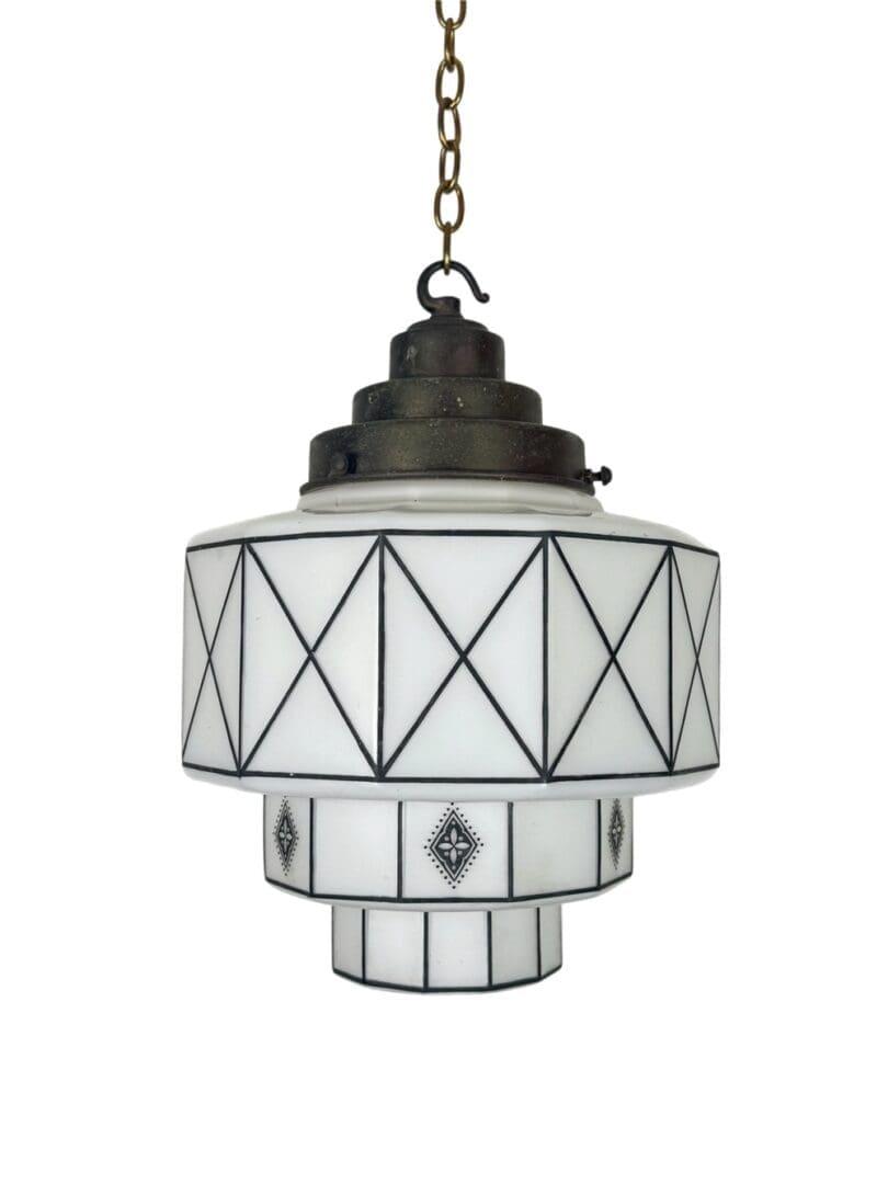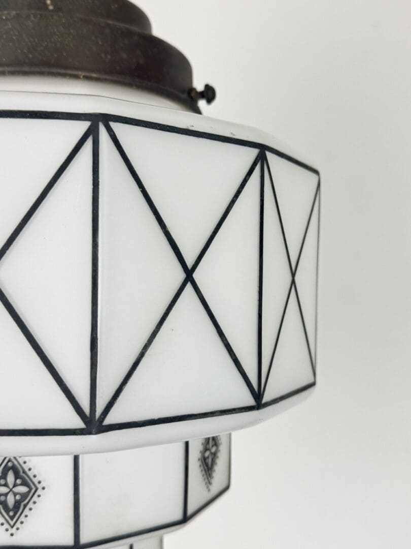 Art Deco Opaline Pendant Light – Black Geometric Motif