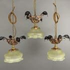 An original art nouveau pendant light full of beautiful detail. The fittings are made of a combination of polished copper leaves and a brass stem which contrasts with 4 graceful steel springs.