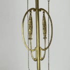 A delicate ceiling light featuring a decorative fixed stem. Originally for gas and now converted to electricity, it still has the original on and off chains in place.