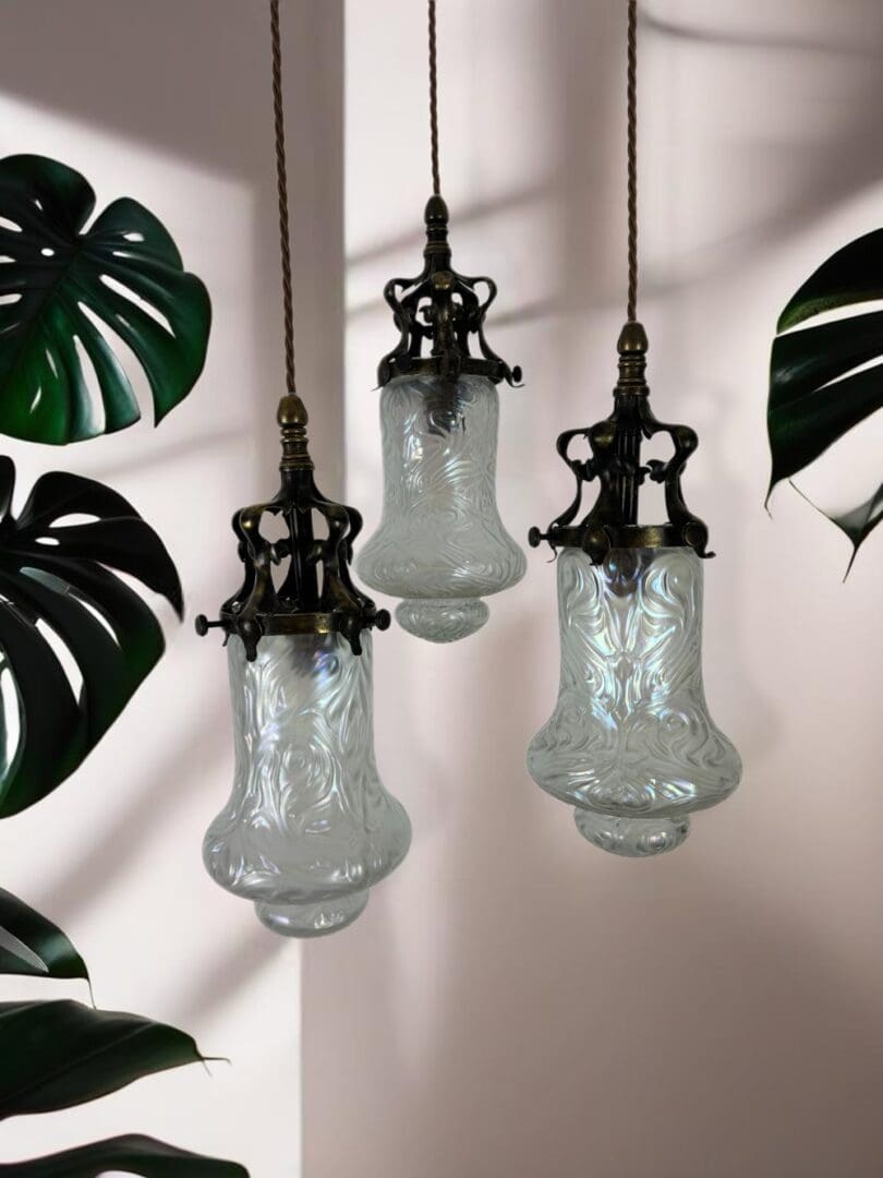 Both glass shade and gallery are all original art nouveau and date back to the early 20th century.