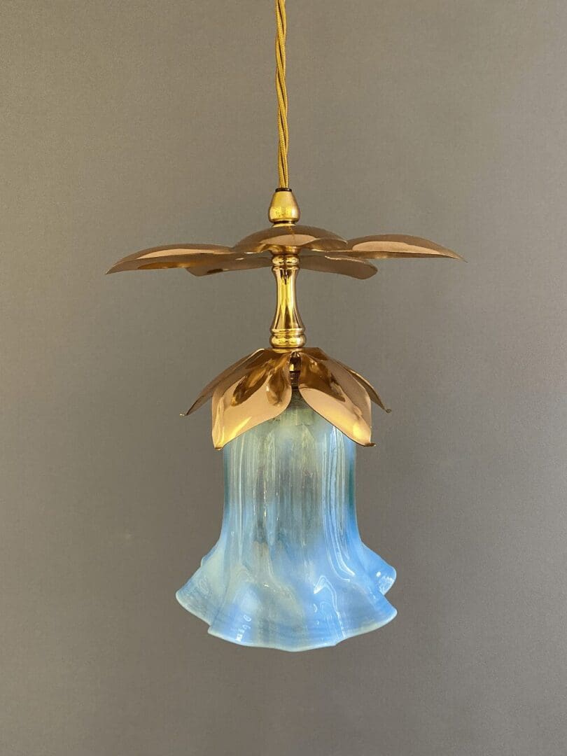 Art Nouveau Light – Copper Petals with Blue Vaseline Glass Shade