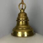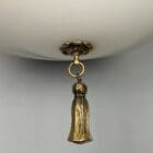 This is an all original art nouveau light. The glass has a satin finish and is attractively shaped. Fitted with a tall brass gallery which has ribbon detail. The brass finial and tassel adds extra detail.