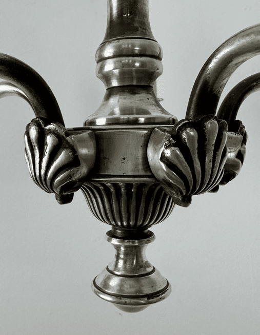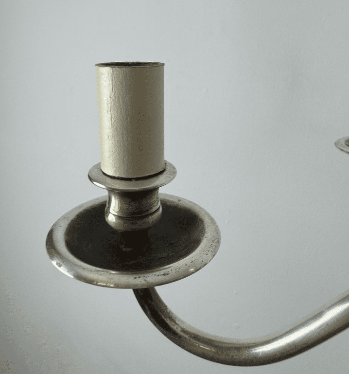Each graceful arm holds a candle sleeve allowing for either visible bulbs or can accommodate small candle clip shades.