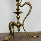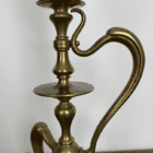 Dating back to the early Art Nouveau period, this lamp sits on three heart shaped feet and has a side feature handle which sweeps from top to bottom.