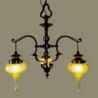 Three Arm Art Nouveau Chandelier with Pink Glass Shades