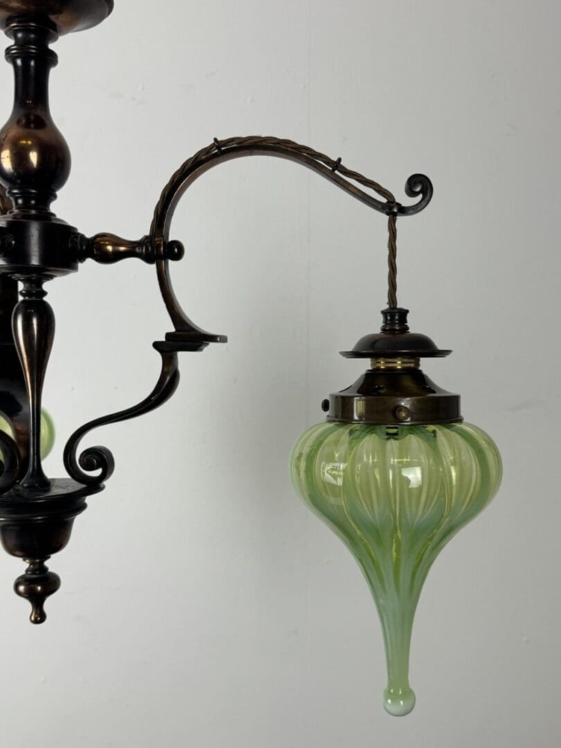 A high quality original art nouveau chandelier made from brass with dark antique finish.