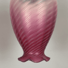 A tulip shaped cranberry glass pendant light. An original arts and crafts era Powell vaseline glass shade with a simple, open style gallery fitting. Brass fitting retains the aged brass patina.