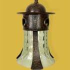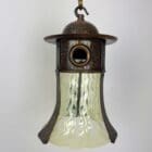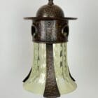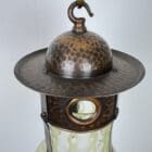 This beautiful and all original lantern dates back to the Arts and Crafts Movement. The vaseline glass insert is in premium condition and flares gently at the base.