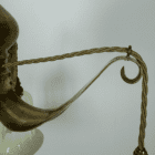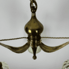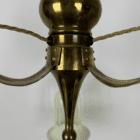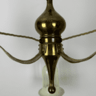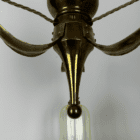The brass frame features three gently curved arms flowing from the centre column. Hand-pressing of the brass arms has achieved the three dimensional shape which is so aestetically pleasing.