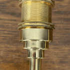 A very simple wall light made from polished brass. The circular backplate features a raised step design to the centre which is echoed in the stepped design to the underside of the bulb holder