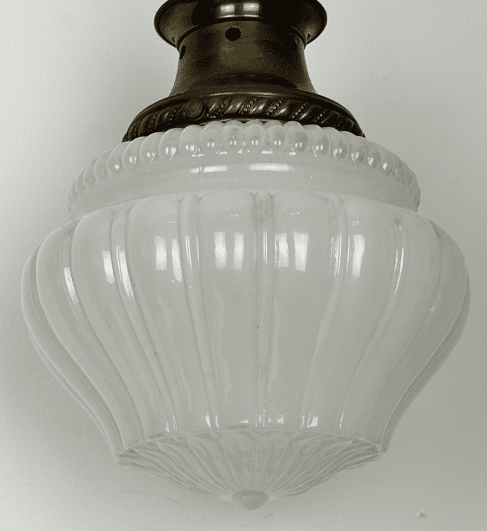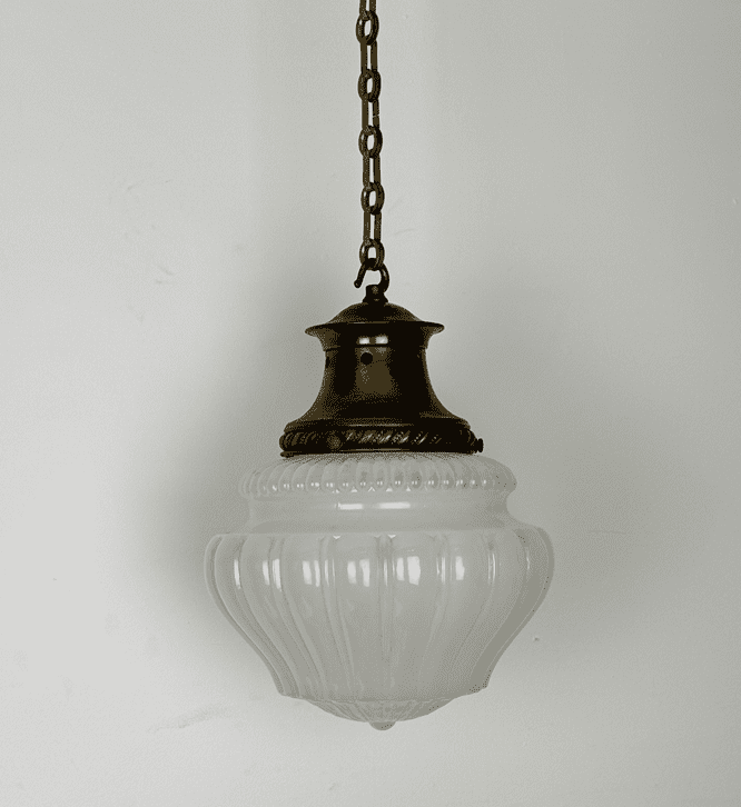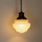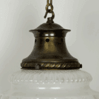 A beautifully detailed moonstone glass pendant light. Dating back to the early 20th century.