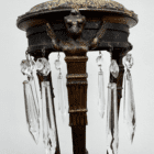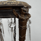 Standing on a marble base, each of the three legs has claw feet and is  topped with a classic Griffin figures and crystal droplets.