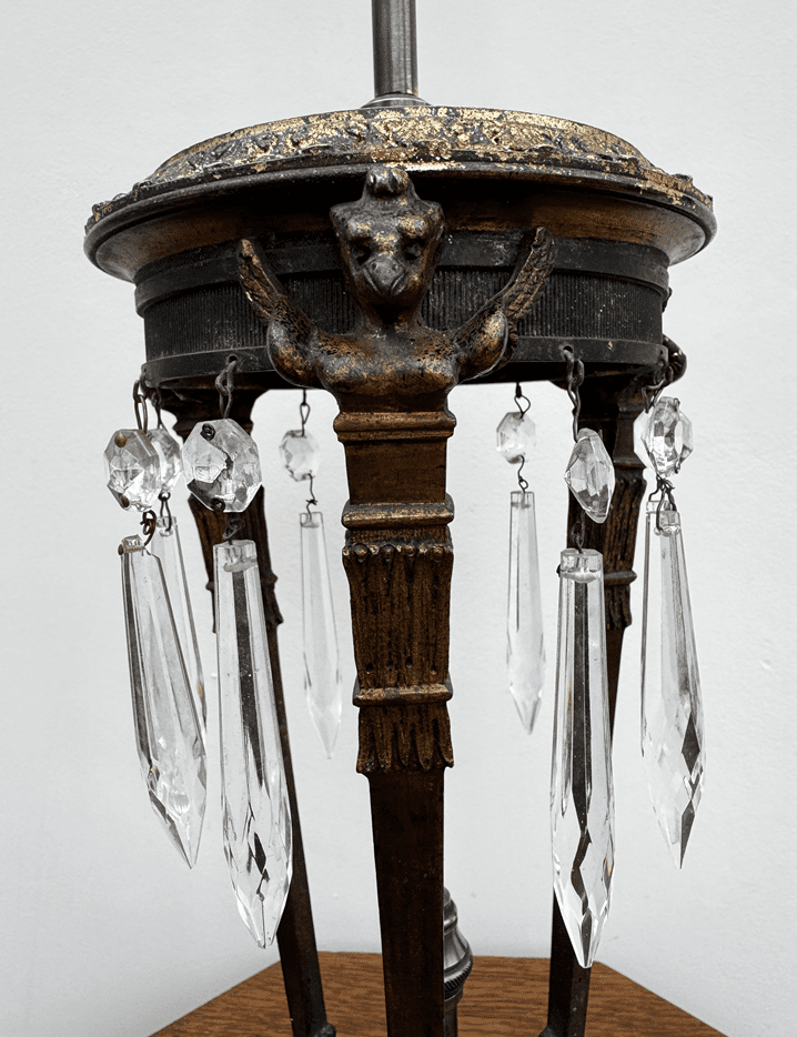 The lamp has a faded gilded finish and is ready  for you to add your own fabric shade.