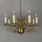 The Flemish style chandelier is easily recognised by the large central ball. This particular chandelier isn’t over large and features eight deeply scrolling arms with candle sleeves.