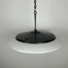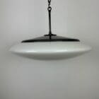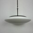 Fabulous mid century pendant light. Fantastic size and slim silhouette to this white glass pendant light.