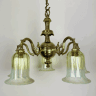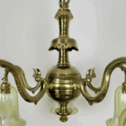 Please note that antique lighting may have some light age-related scratches and marks or slight manufacturing flaws. This chandelier shows some small marks and blemishes to brass finish.
