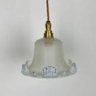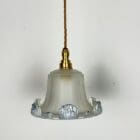 A pretty pendant light with glass shade dating back to the late art nouveau period. Frosted glass shade is decorated with blue tinged vaseline glass detail around the lower edge.