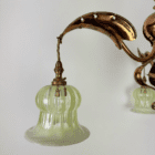 Fitted with striped opalescent glass shades. Hand made for us by a UK based glass blower.