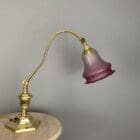 Hexagonal Base Brass Table Lamp Cranberry Shade