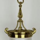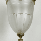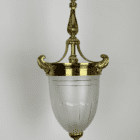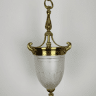 A superb original art nouveau lantern manufactured by F C Osler. Decorative pattern to the frosted glass with finial at the base. The brass frame is highly polished and suspended from a decorative stem and hoop. Beautiful quality displayed throughout this antique lantern.