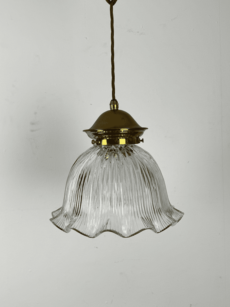 Prismatic Holophane Glass shade with a pretty frilled edge. This shade dates back to the early 20th century.