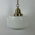 This art deco era pendant light is extra large sized and features a stepped design to both the top and bottom .
