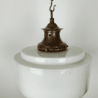 This all original art deco era pendant light is extra large sized and features a stepped design to both the top and bottom.