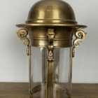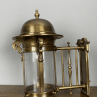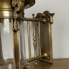 This is a good quality reproduction wall lantern for indoor use. Made from solid brass with a dark aged finish.Heavy and simply styled.