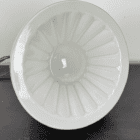 A classic tulip shaped glass shade but look underneath and there is a bold geometric flower.