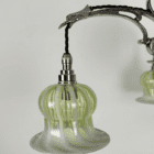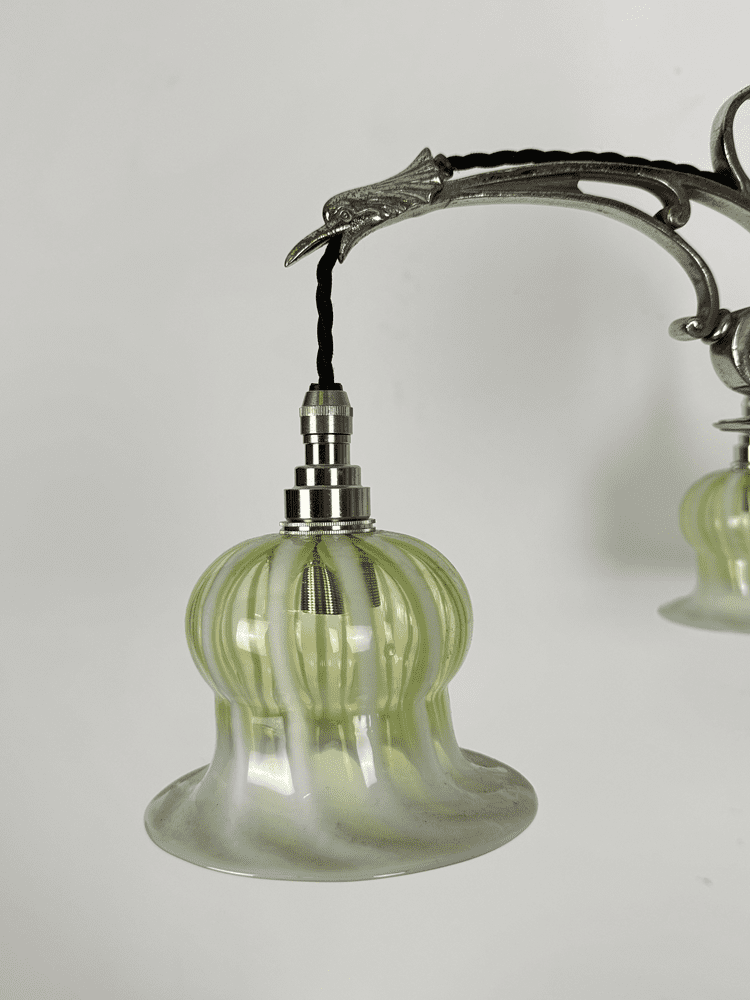Fitted with striped opalescent glass shades. Hand made for us by a UK based glass blower.