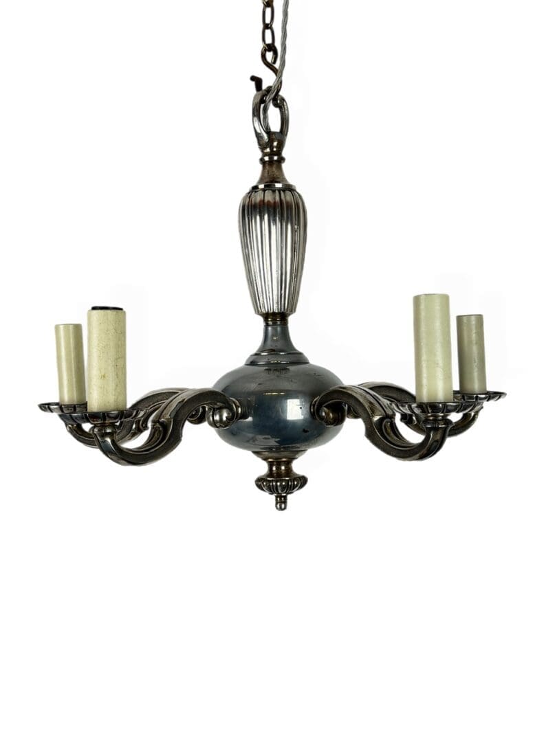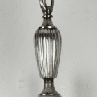 Featuring a large central ball, a bold fluted centre stem and scrolled arms
