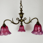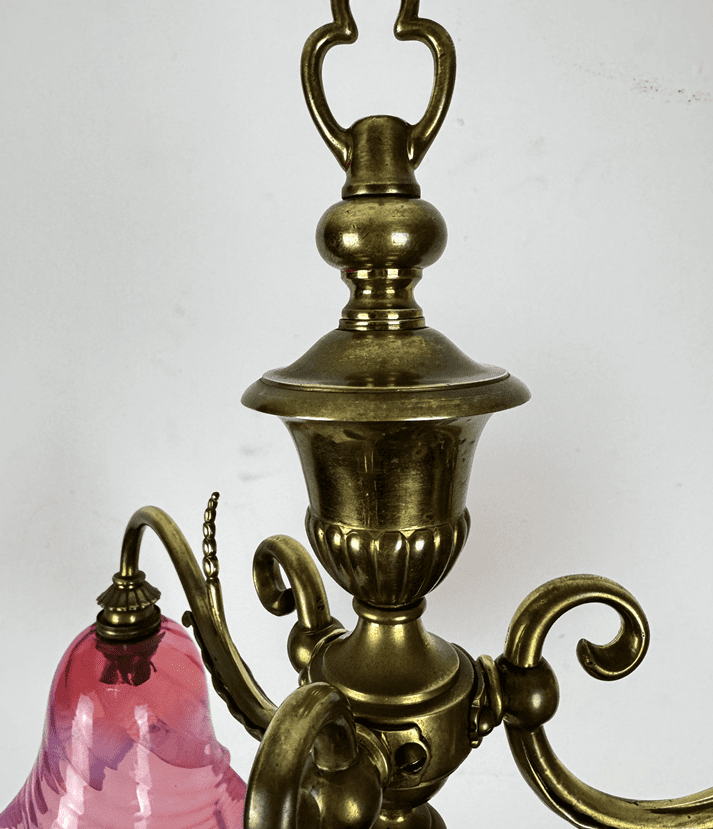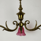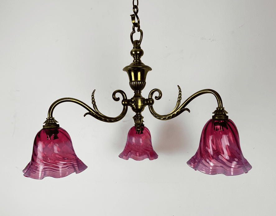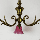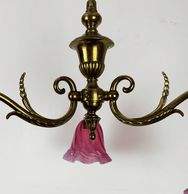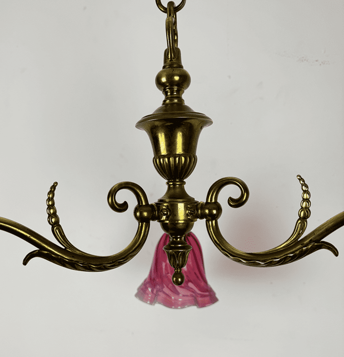Small Art Nouveau Chandelier Cranberry Glass Shades