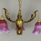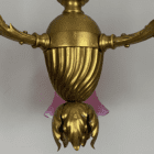 This leafy chandelier is a small size making it perfect for a small room. The brass frame is rococo style and has been hand restored to return a gentle polish to the brass.