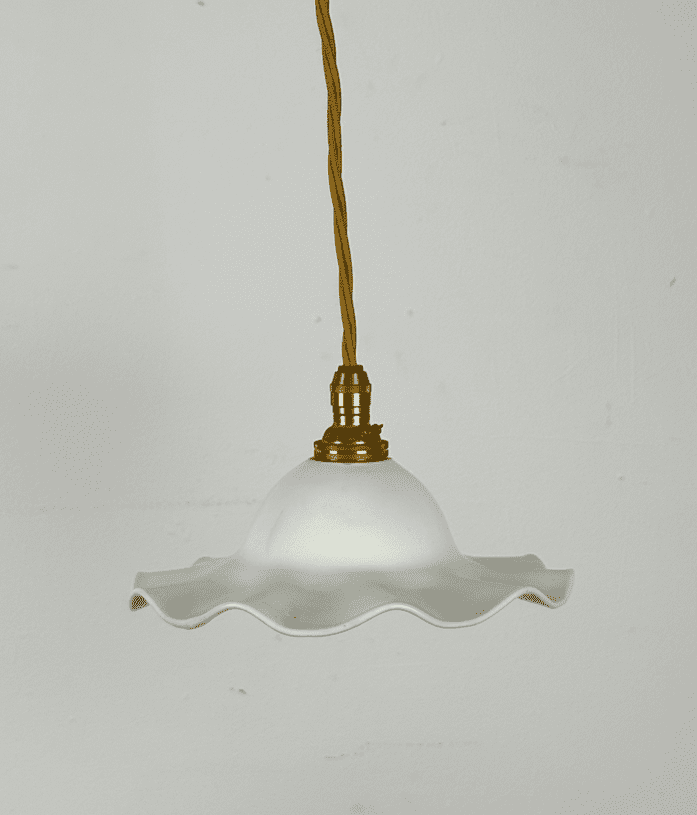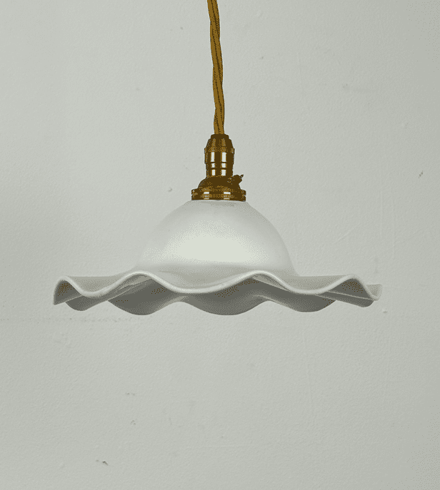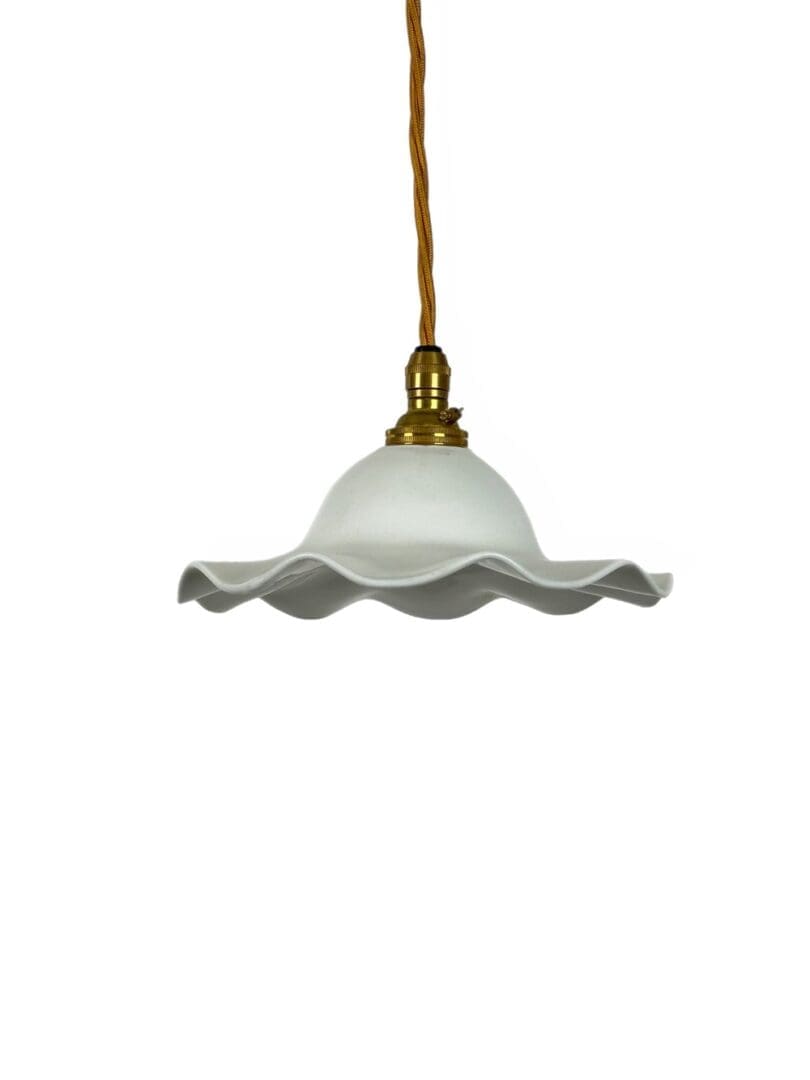 Small Frilled White Porcelain Pendant Light