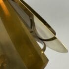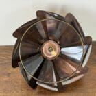 Beautifully hand crafted and comprising of eight brass segments. These three-sided shapes have soft edges and have been precisely configured to form a shade which allows the light to filter through yet shields the bulb from view. With the appearance of a fan blade, the overall effect is almost aeronautical.
