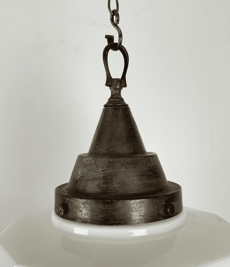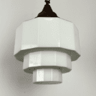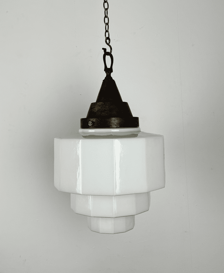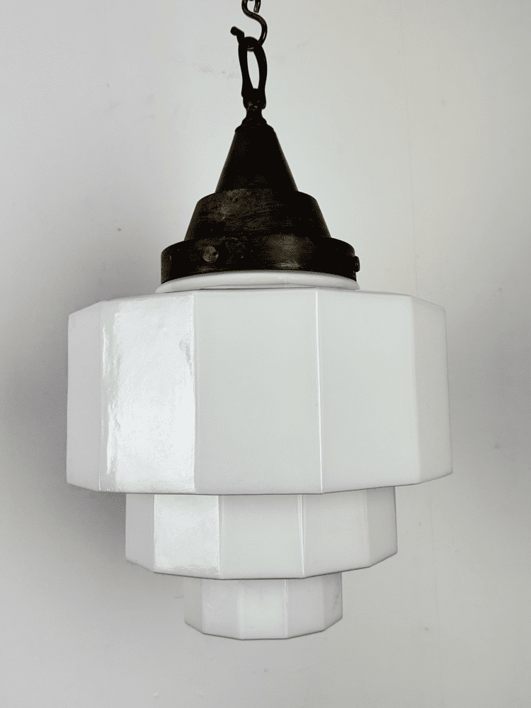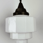 An Art Deco Pendant light in the classic geometric style. Twelve sides and three graduated steps.