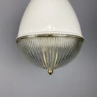 An elegant two part pendant light combining a porcelain top section and a prismatic base. Topped with an elongated hanging hoop and a base finial – both made from solid brass.