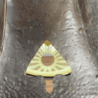 The antique vaseline glass shade is extra large – see dimensions below. In perfect condition with no chips or cracks. Featuring a vertical stripe and ending with a small frilled opening.