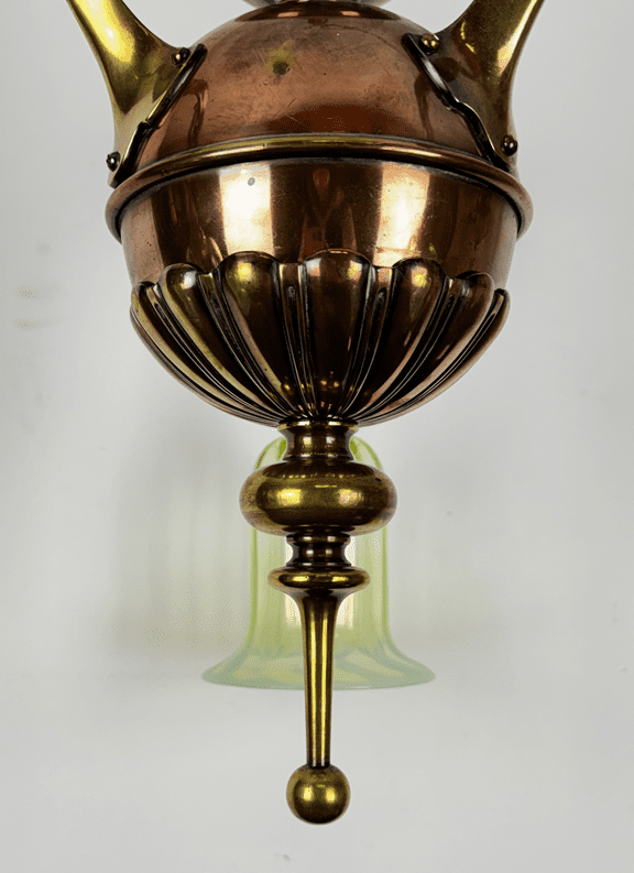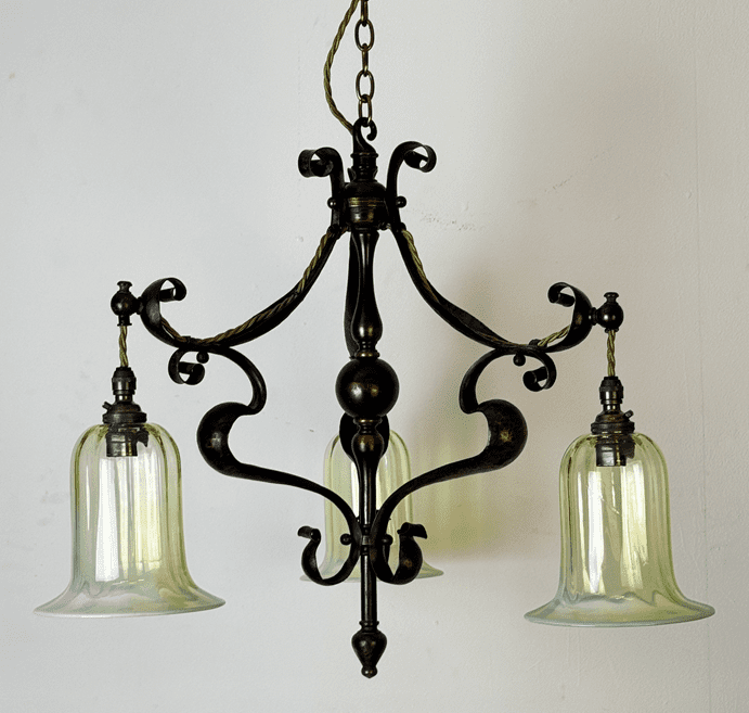 Three Arm Brass and Copper Art Nouveau Chandelier (26207)